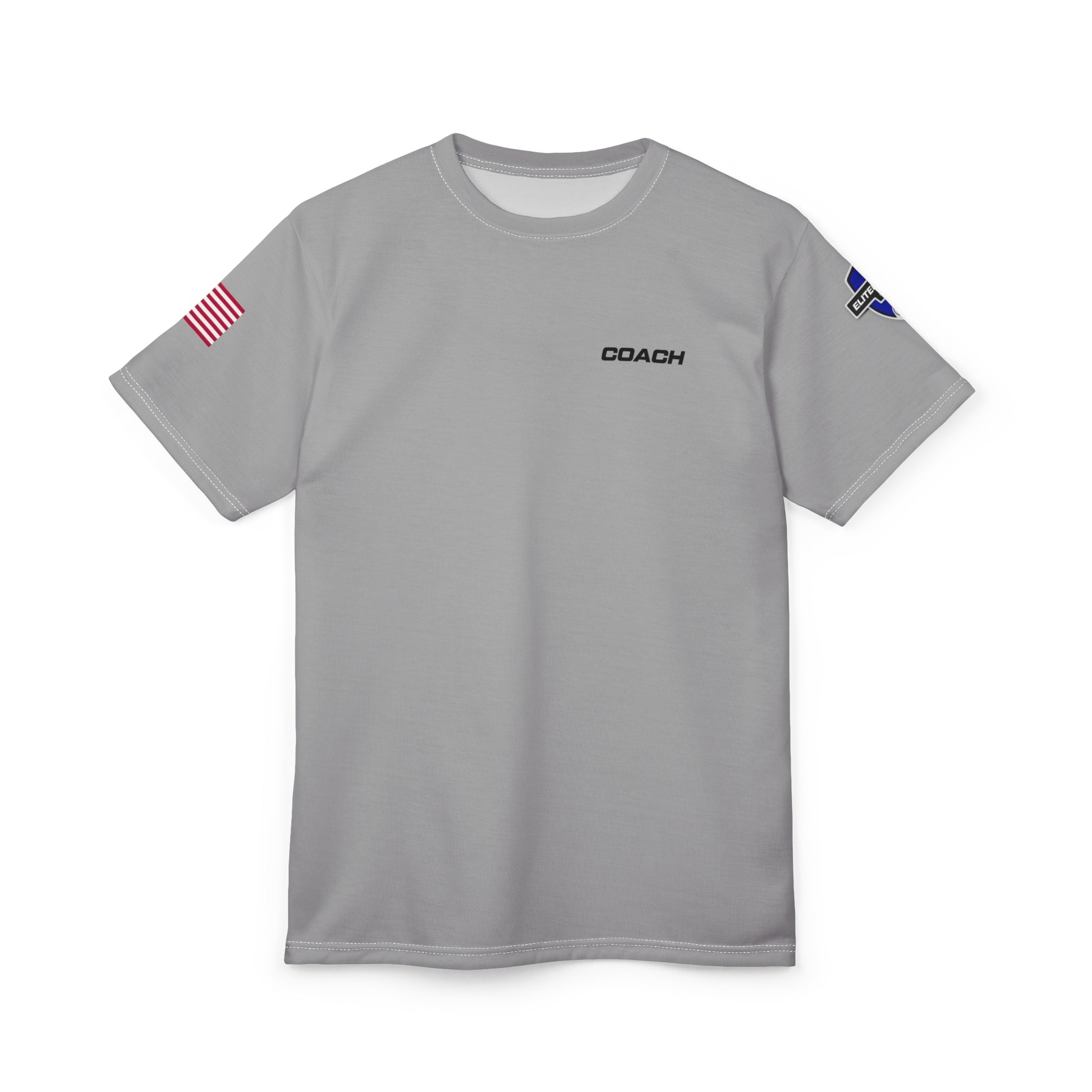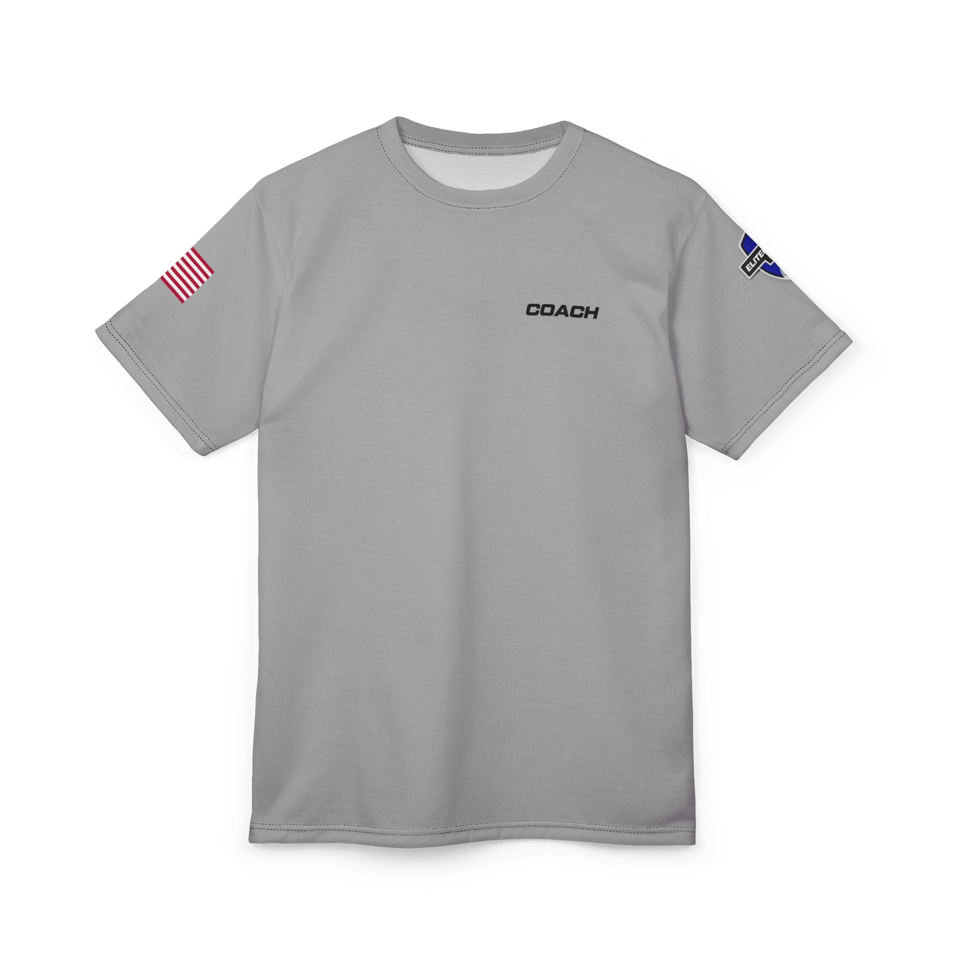 Lightweight and structured, this all-over printed tee carries a quiet, practical energy — built to move with you and keep its shape wash after wash. The soft gray canvas is detailed with subtle coach branding on the chest and modest sleeve insignia, giving it a purposeful, team-ready look without shouting. It sits cleanly on the shoulders, holds its silhouette, and feels smooth against the skin. Wear it for early morning drills, weekend practices, or while organizing the next session — it’s a steady layer that blends function with low-key authority.